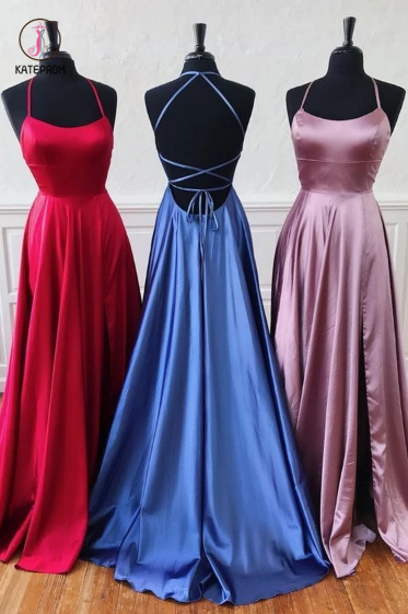 Kateprom Simple Criss Cross Back Long Prom Dresses, Senior Evening Dresses with Split KPP0108