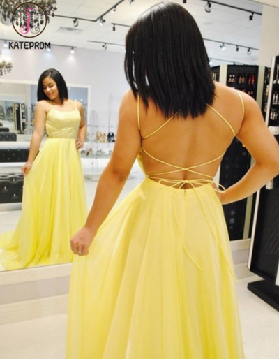 Kateprom Sexy Lace Up Back Mermaid Yellow Long Prom Dress,Evening Dress KPP0182