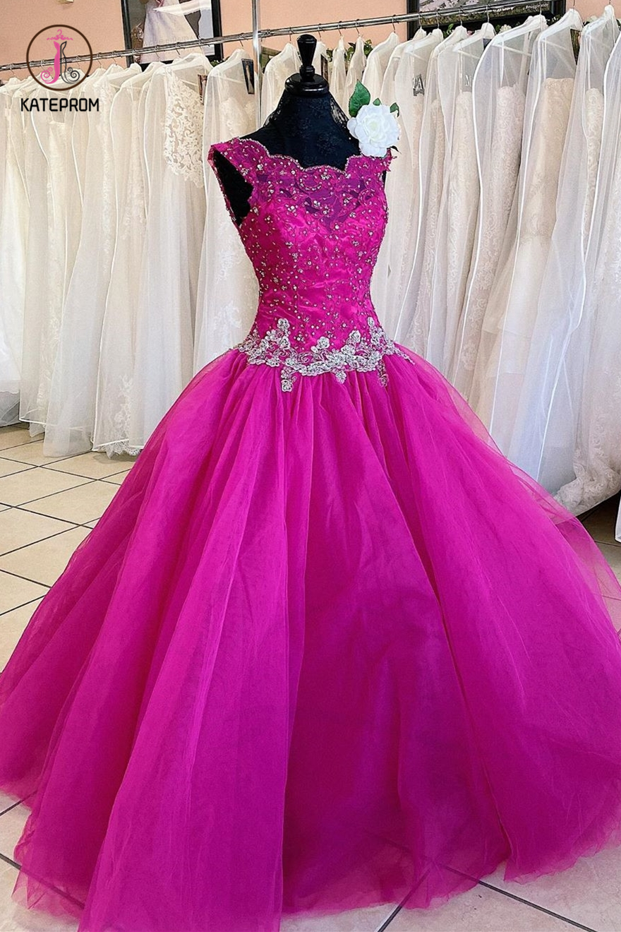 Fuchsia Ball Gown Party Dress Prom Dress Evening Dress with Beading KPP0264