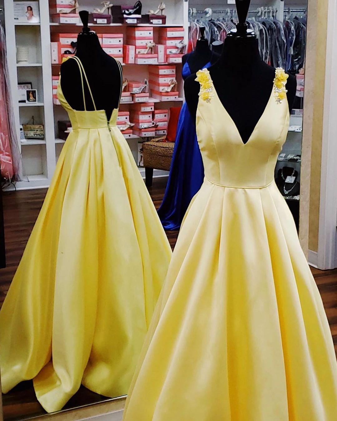 Elegant Yellow Satin Long Prom Dress KPP0293