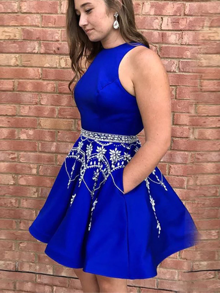 Royal Blue Homecoming Dresses Scoop Rhinestone Sparkly Short Prom Dress Party Dress KPP0348