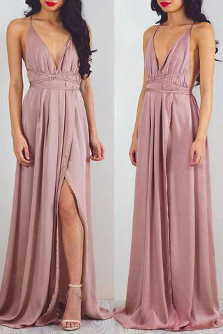 Sexy Beach Open Back Side Split Long Prom Dresses KPP0695