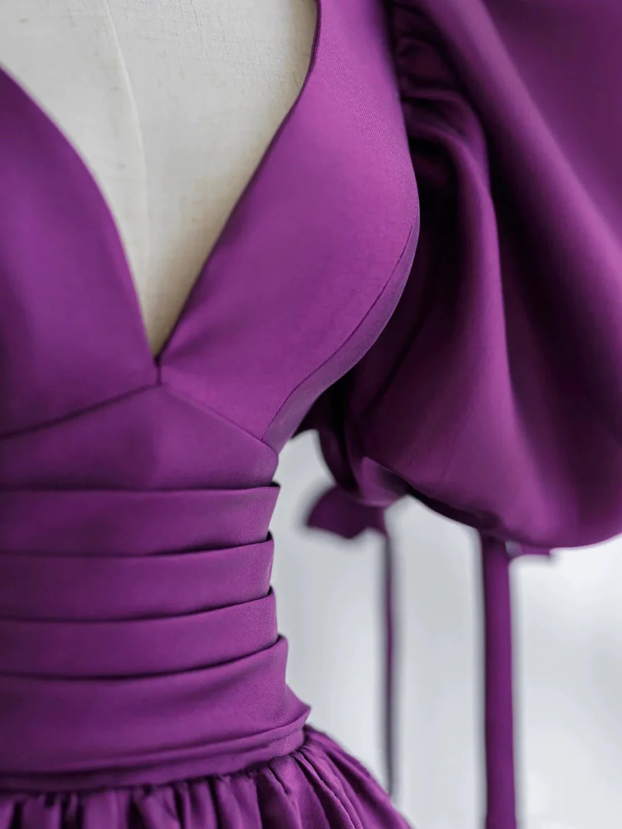 Purple V Neck Satin Long Prom Dresses, Purple Evening Dresses KPP0934