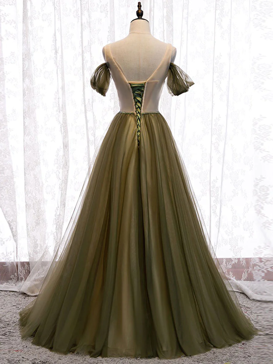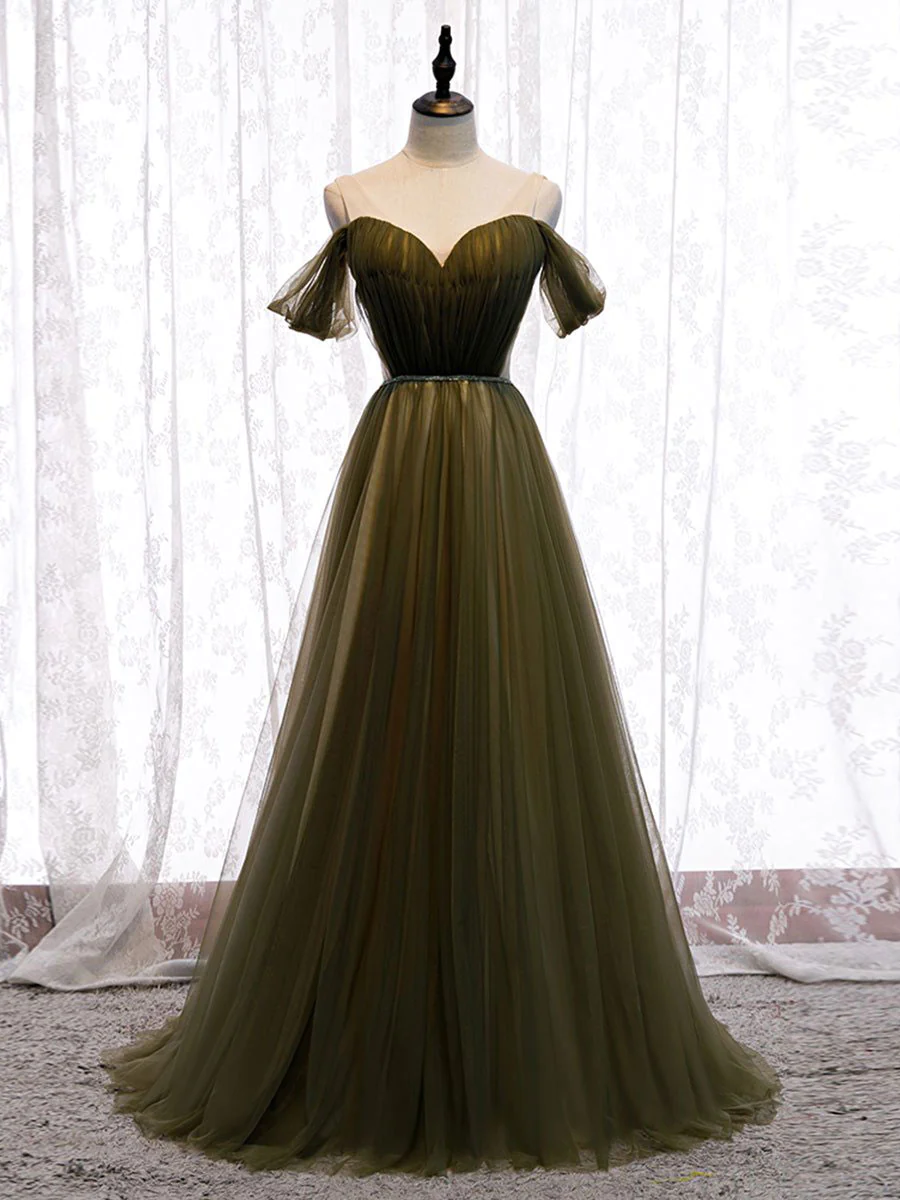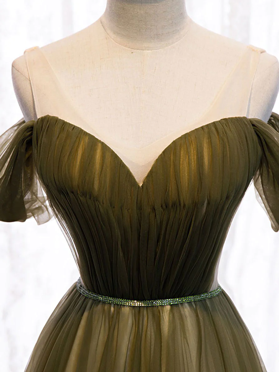 Simple sweetheart tulle green long prom dress, green evening dress KPP1075