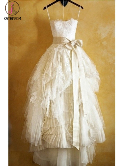 Kateprom Spaghetti Strap Bowknot Sash A-line Wedding Dress,Bridal Gown,Cheap Wedding Dress KPW0012