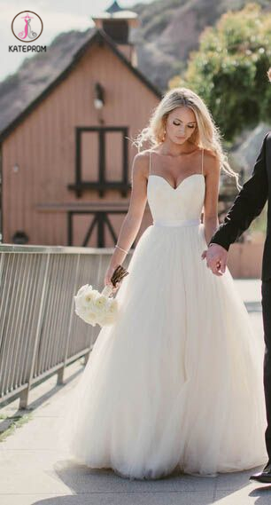 Kateprom Beauty Spaghetti Strap Sweetheart Tulle Beach Wedding Dress,Bridal Gown KPW0014