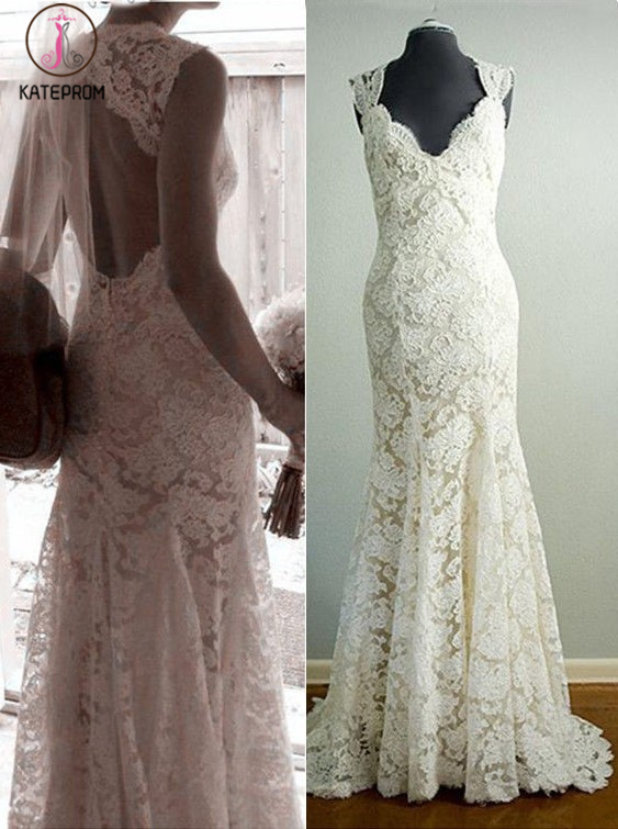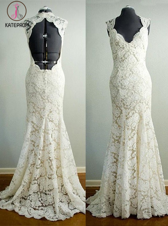Kateprom Lace Diomand Collar Key-hole Back Sleeveless Wedding Dress KPW0022