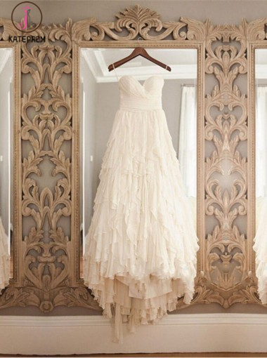 Kateprom Sweetheart Vintage Layers A-line Chiffon Sweep Train Lace Wedding Dress KPW0025