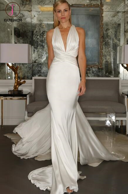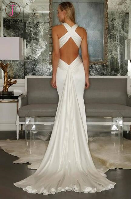 Kateprom Sexy Simple Mermaid Criss-cross Back Wedding Dress KPW0034