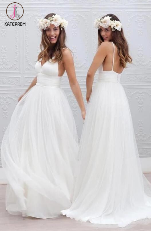 Kateprom Simple A Line V-neck Floor-Length Tulle Wedding Dress KPW0044