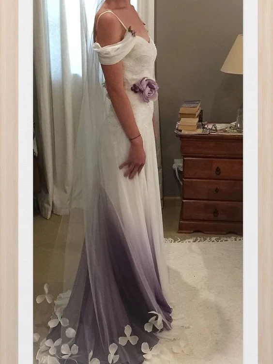 Ombre Wedding Dresses Aline Spaghetti Straps Hand-Made Flower Beach Bridal Gown KPP0507