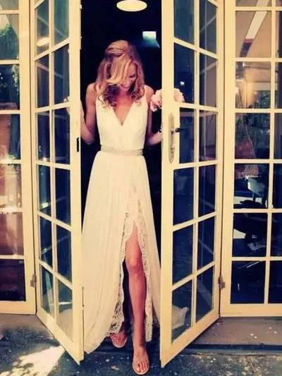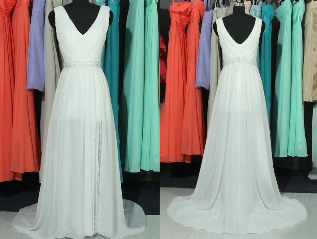 Beautiful Wedding Dresses A-line Short Train Ivory Chiffon Bridal Gown KPP0511