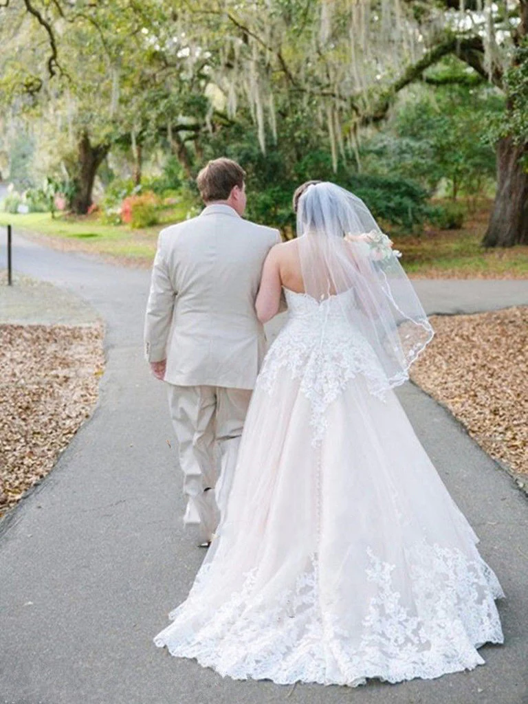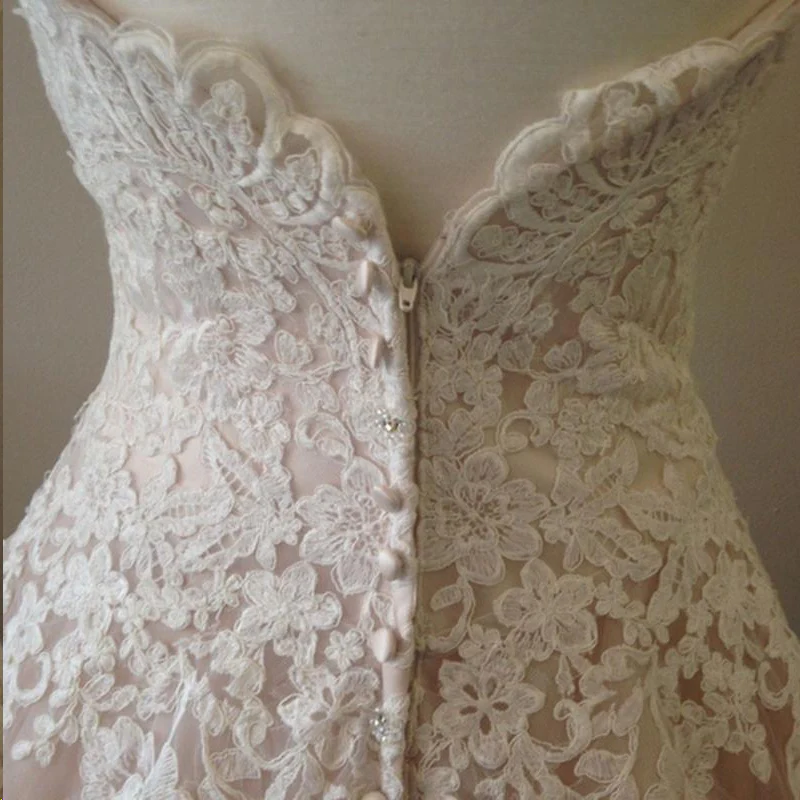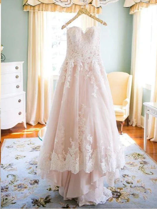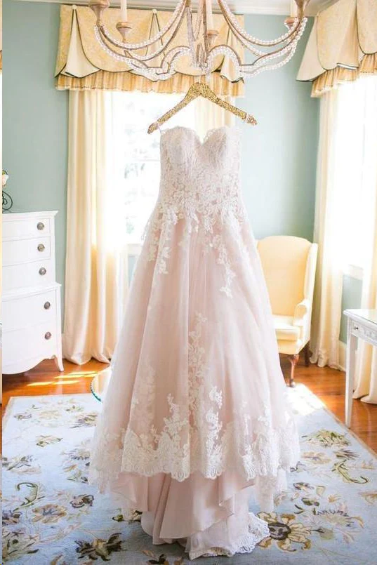 Lace Wedding Dresses Blush Pink Sweetheart A Line Chic Cheap Bridal Gown KPP0518