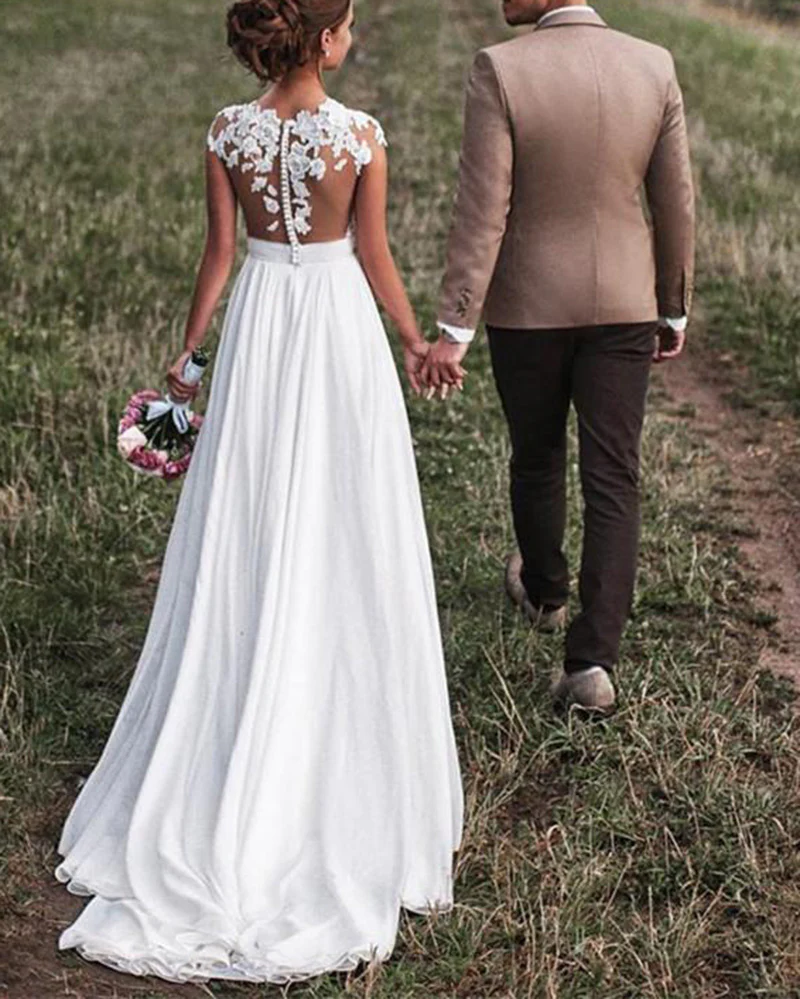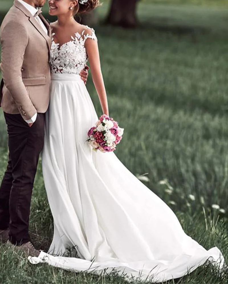 Cap Sleeves Lace Summer Chiffon Country Wedding dress KPP0906