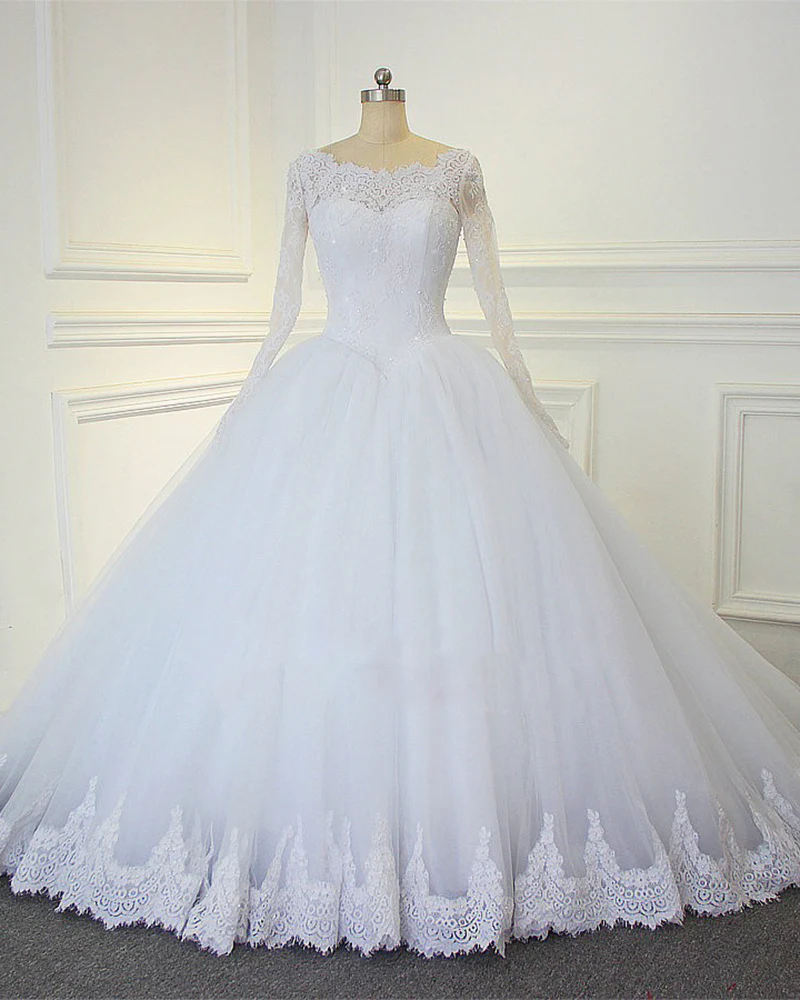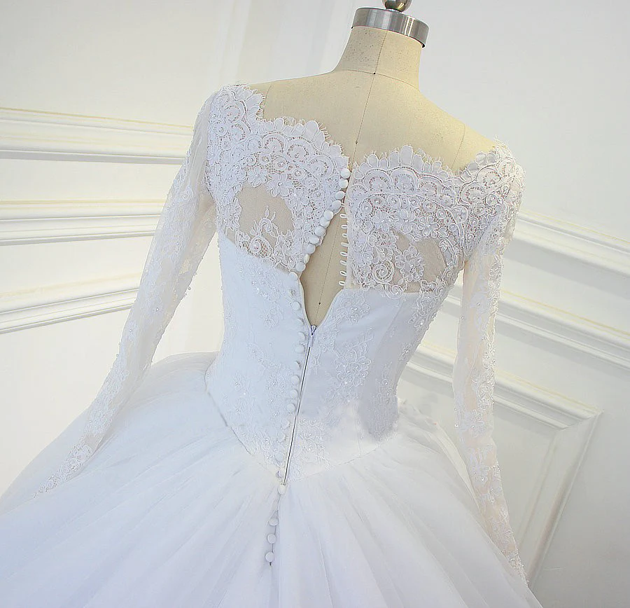 Luxury Lace Long Sleeves Bridal Dresses Ball Gown Wedding Dresses Court Train KPP0907
