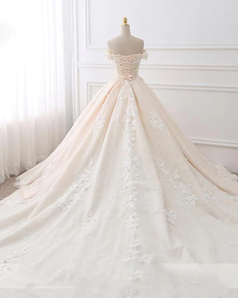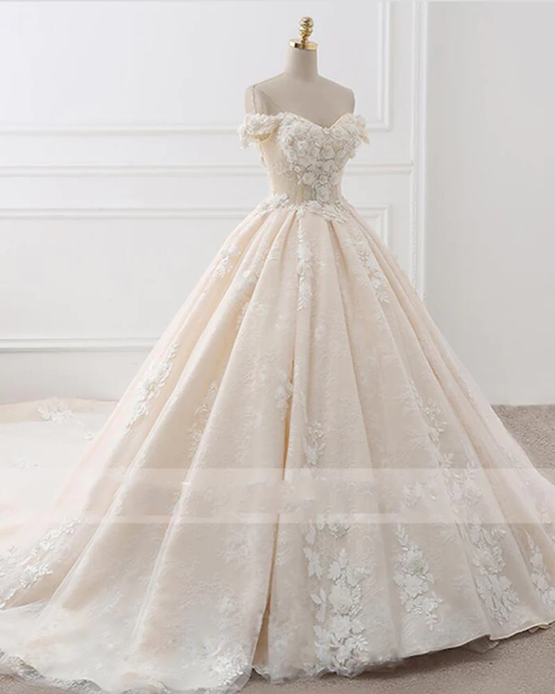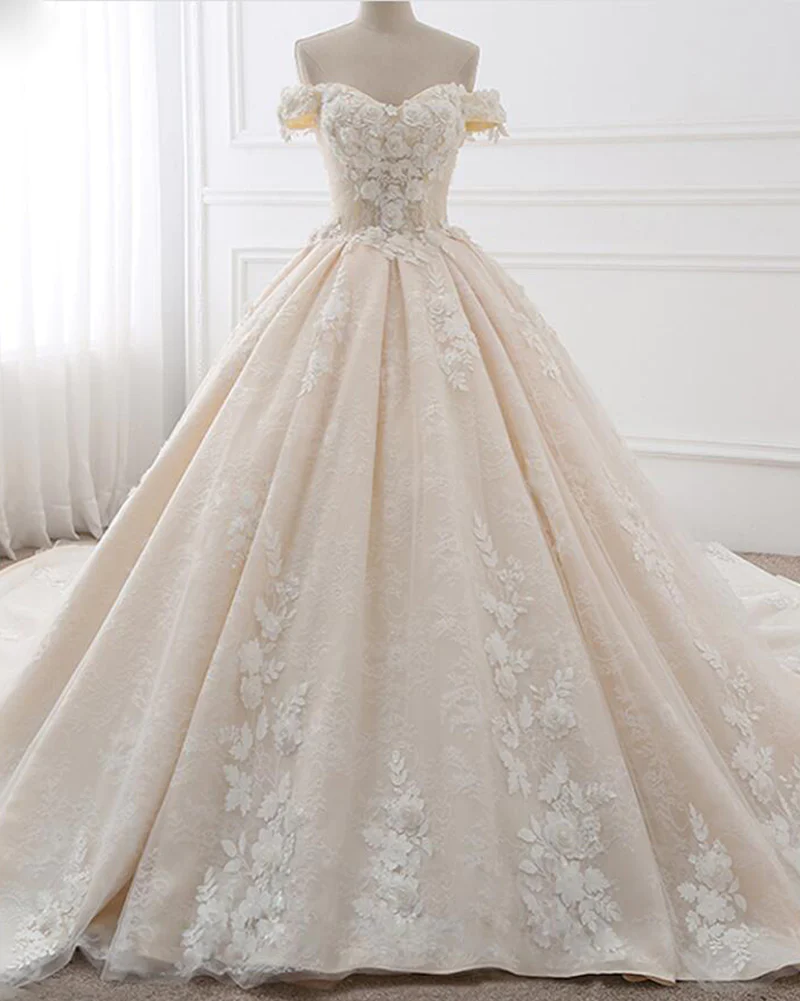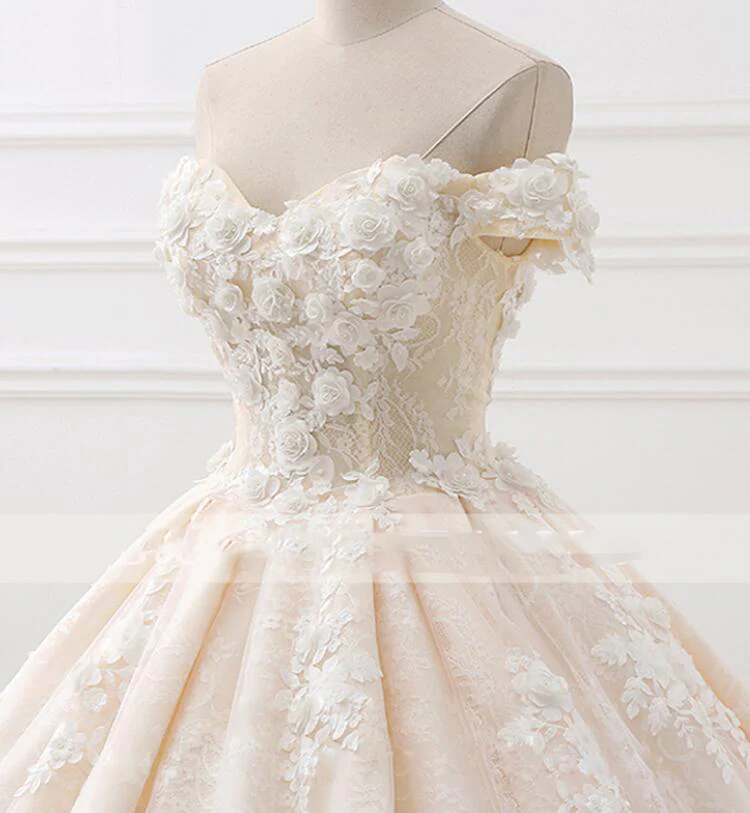 Romantic Off Shoulder Princesss Lace Ball Gown Wedding Dress KPP0913