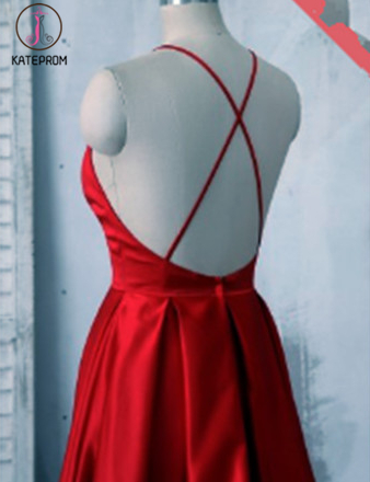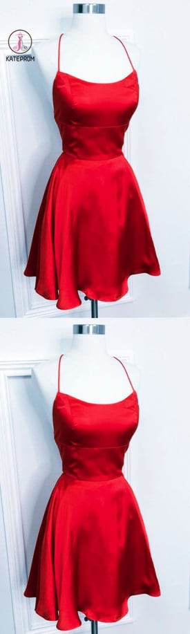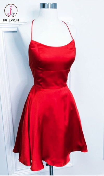 Kateprom Simple Red Satin Short Ruffled Homecoming Dress KPH0028