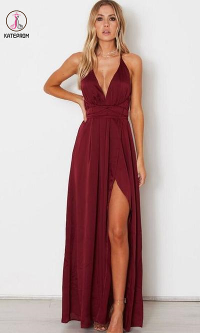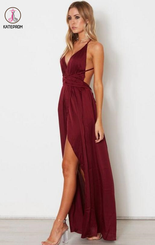 Kateprom Spaghetti Straps A Line Simple Long Burgundy Prom Dresses Sexy Evening Dress KPP0191