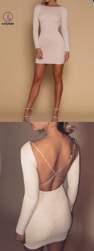 Kateprom Tight Long Sleeves Mini Homecoming Dress, Cocktail Dress, Short Prom Dress KPH0054