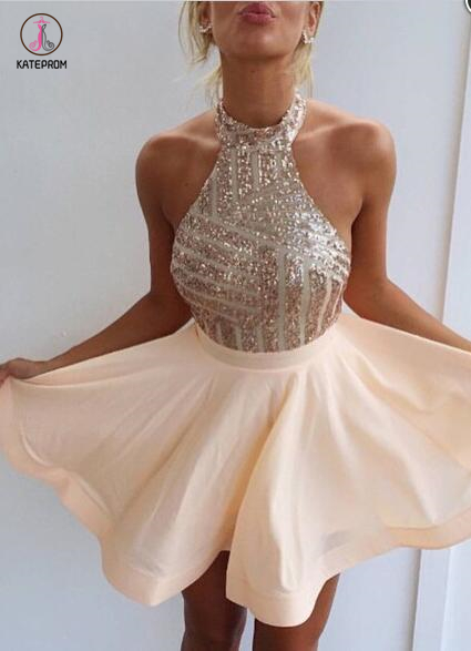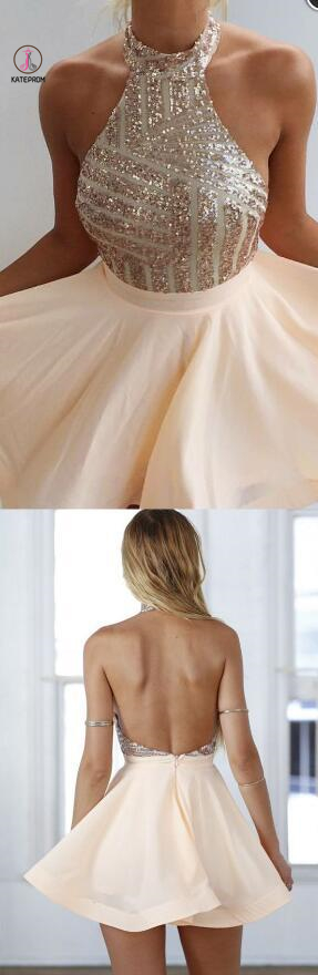 Sexy Open Back Sequin Halter Sparkly Short Homecoming Dresses/Cocktail Dress KPH0072