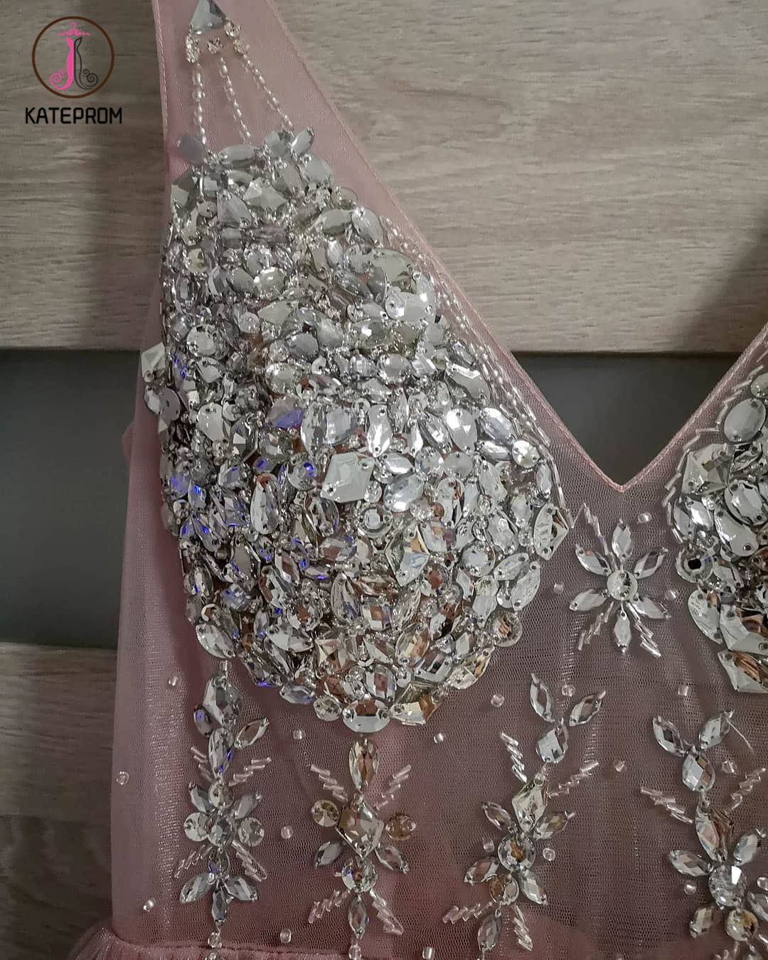 Sexy V Neck Pink Long Tulle Prom Dress KPP0260