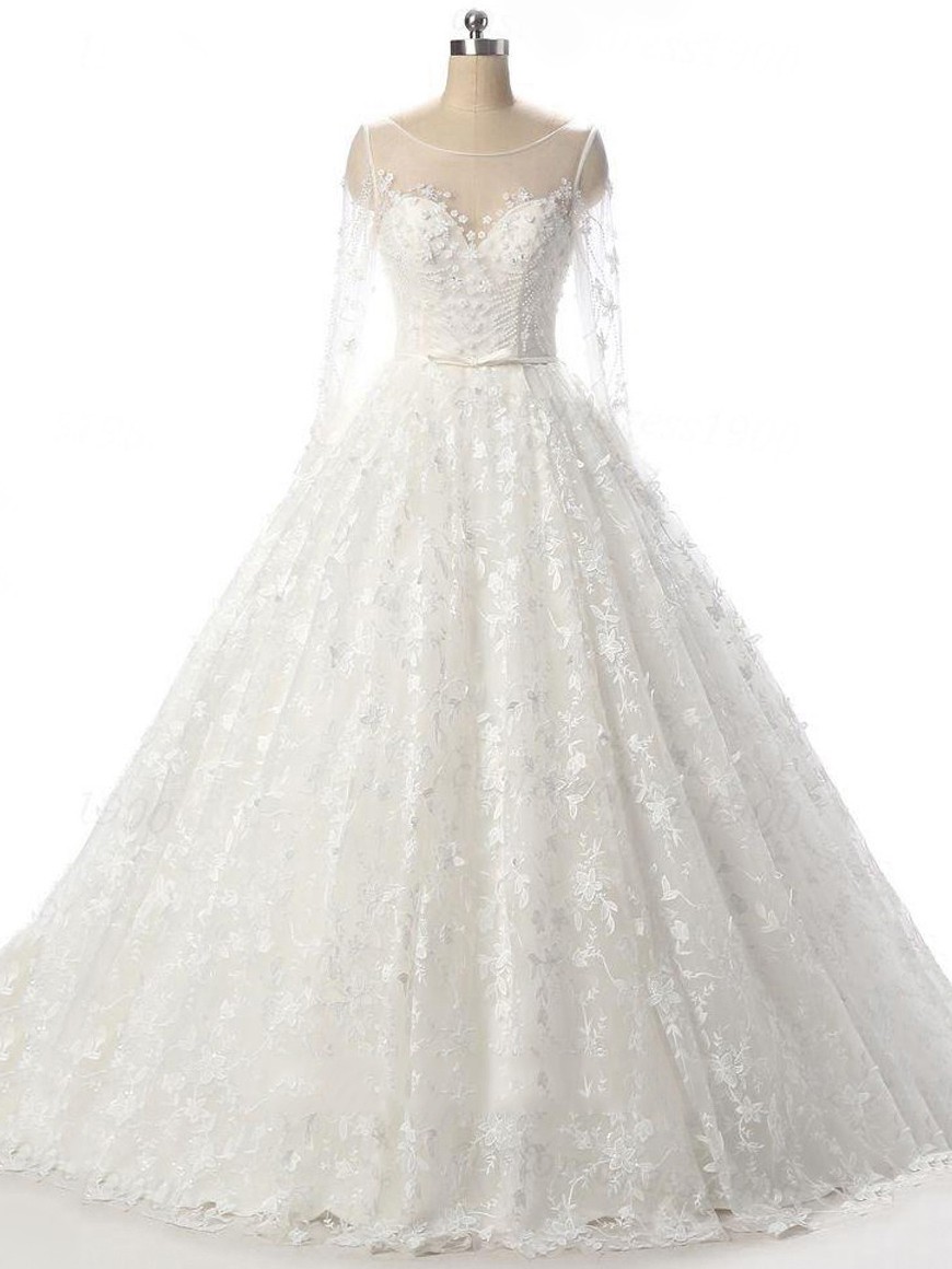 Ball Gown Scoop Neck Tulle Court Train with Beading Wedding Dresses KPP0303