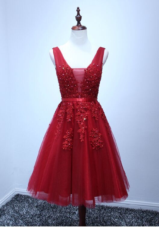 Homecoming Dress Short red Homecoming Dress Short Applique Prom Dress Cheap Prom Dress LACE Party Prom Dress KPH0084
