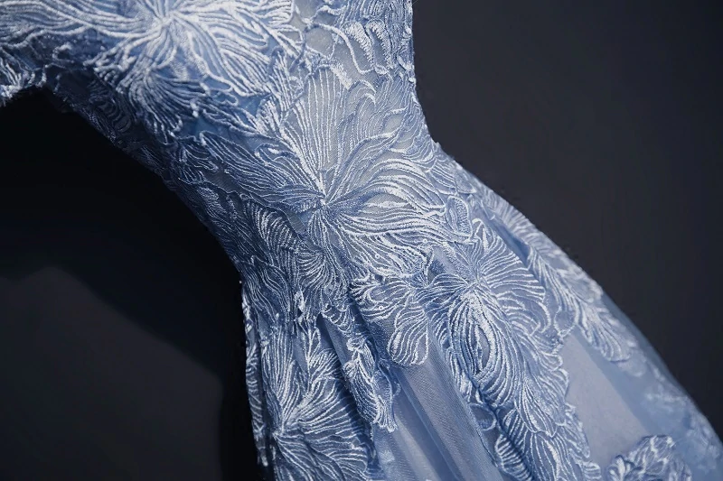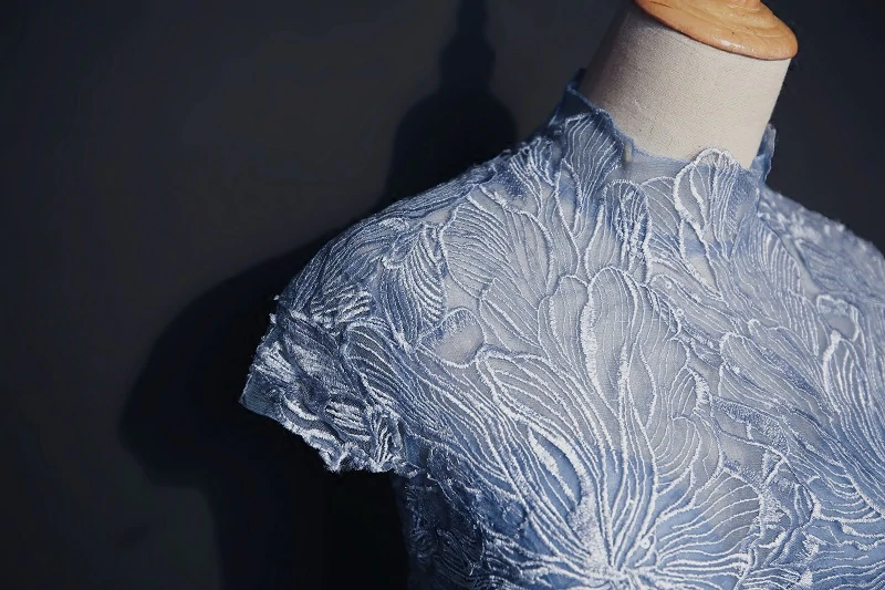 Kateprom Chic High Neck Prom Dress Blue Short Sleeve Long Prom Dress Evening Dress KPP0318