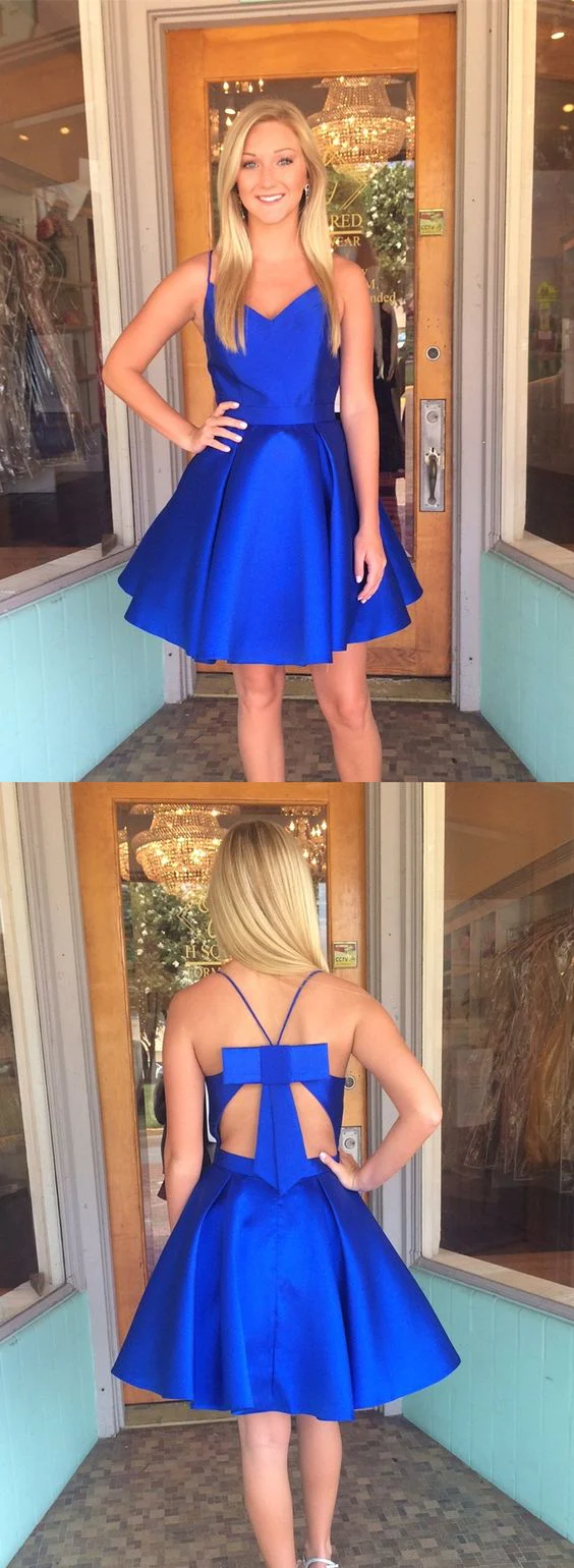 Homecoming Dress Spaghetti Straps Royal Blue Short Prom Dress Party Dress KPP0399