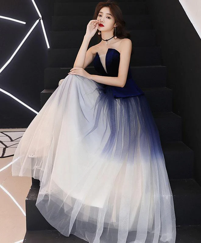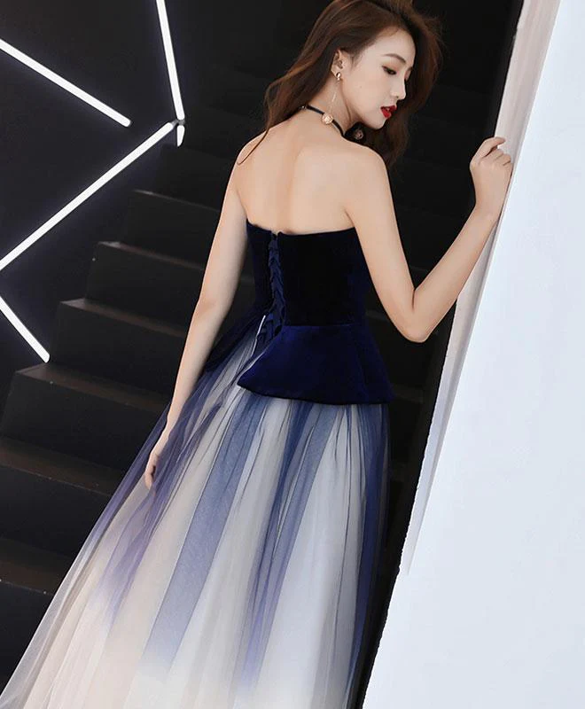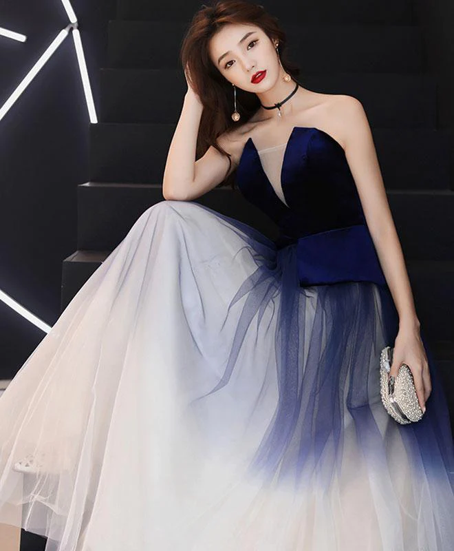 Cheap Prom Dresses Strapless A-line Royal Blue Velvet Long Ombre Prom Dress KPP0435