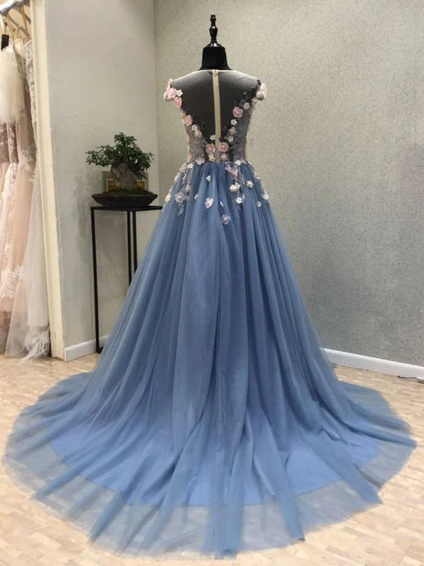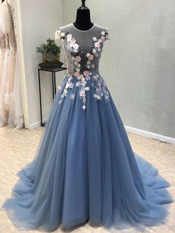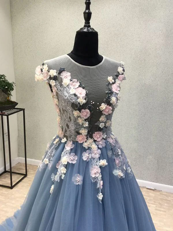 Beautiful Prom Dresses Scoop Aline Sweep Train Lace Hand-Made Flower Chic Prom Dress KPP0470