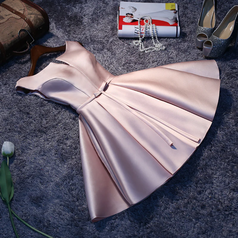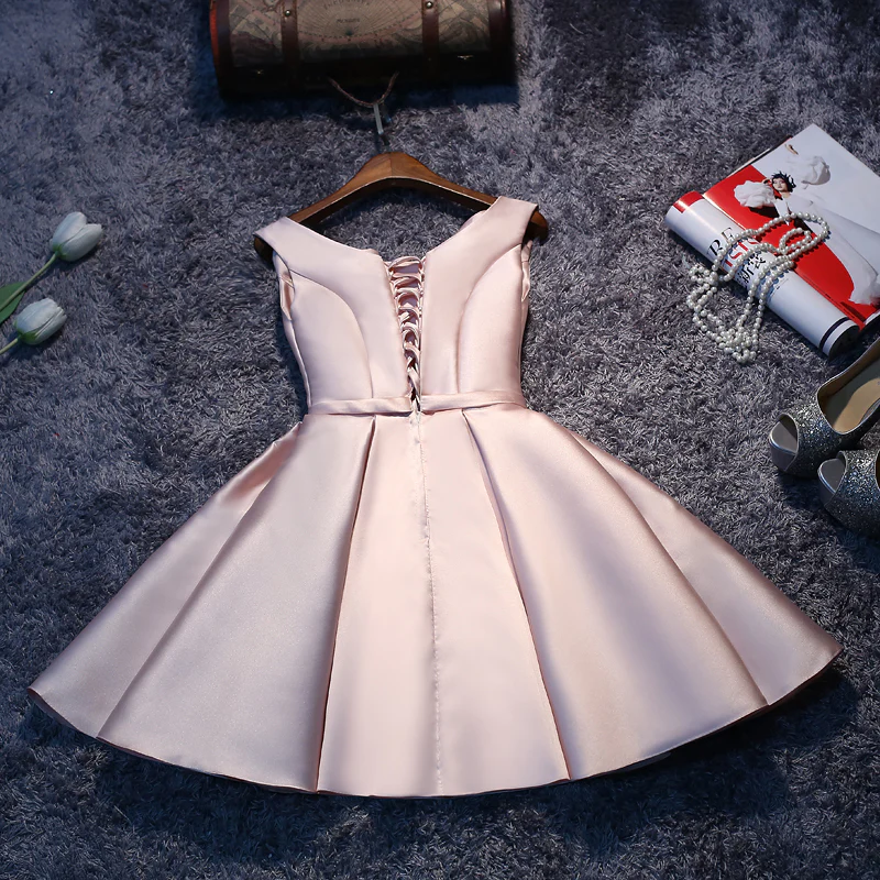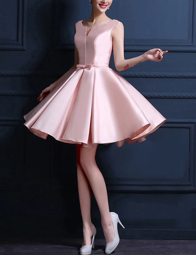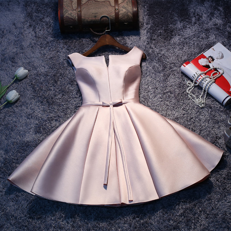Pink Homecoming Dress Bowknot Lace-up Satin Short Prom Dress Party Dress KPP0540