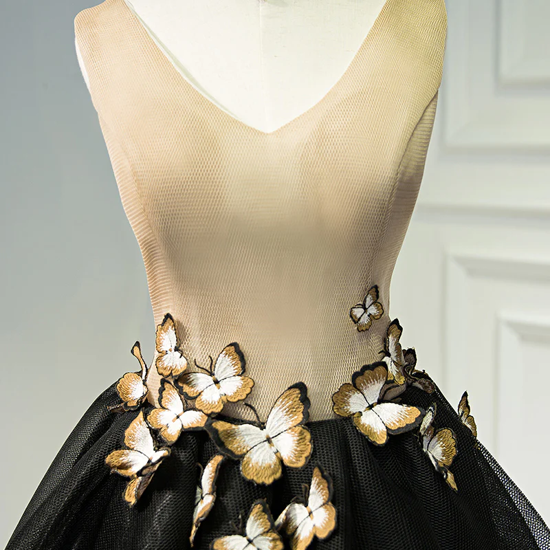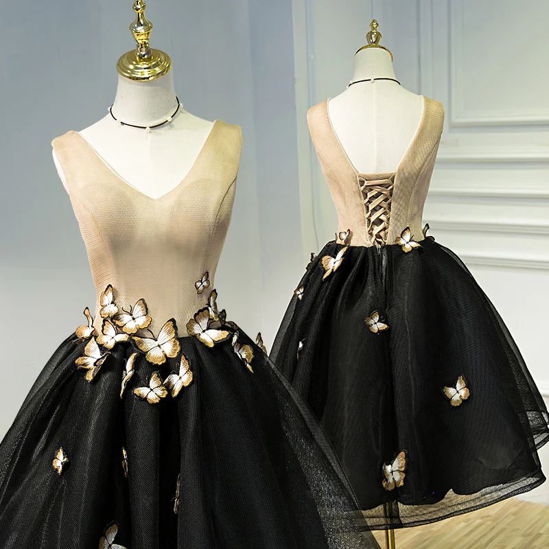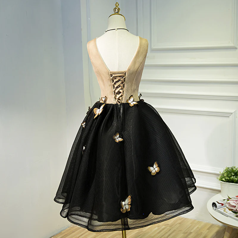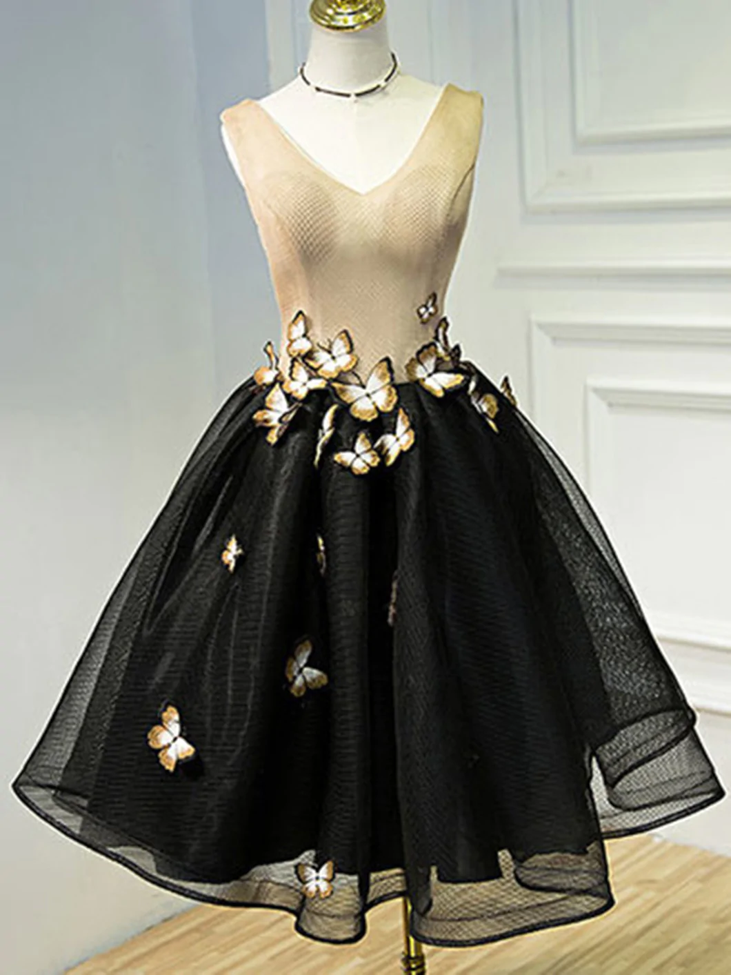 Little Black Dresses Homecoming Dress Butterfly V-neck Short Prom Dress Party Dress KPP0557
