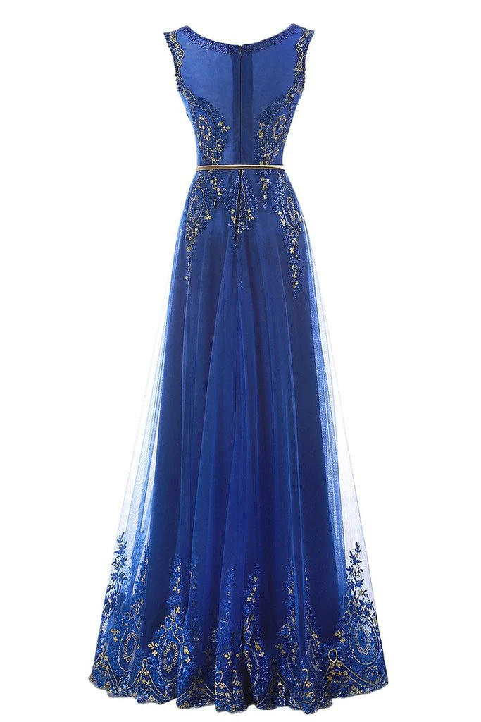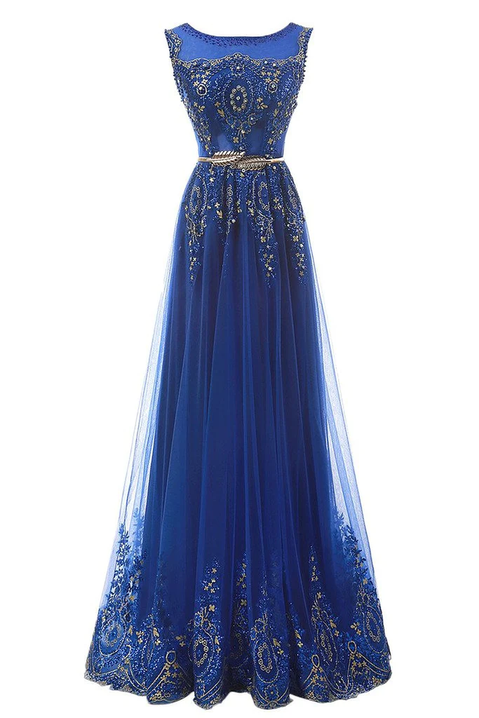 Gorgeous Scoop Neck Beading Royal Blue Prom Dresses KPP0636