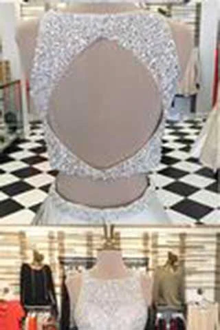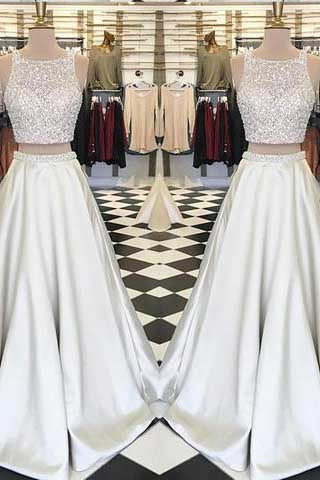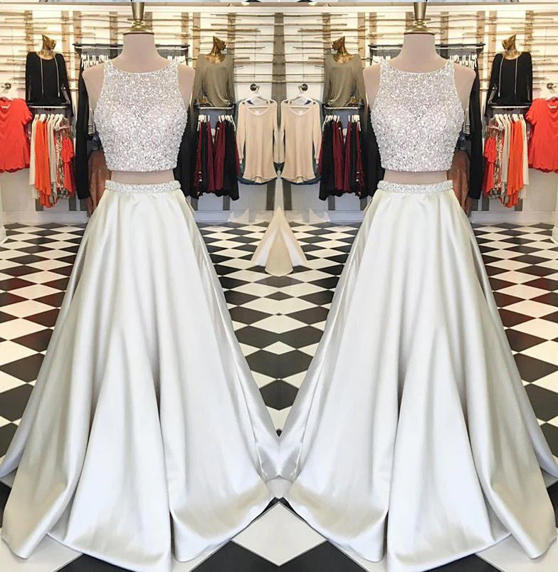 Stunning Satin Two Pieces Sequins Rhinestone Prom Dresses KPP0692