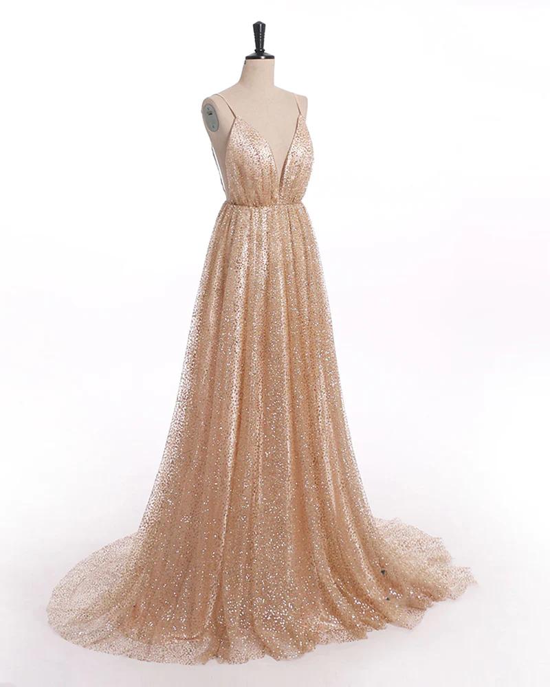 Straps Sequins Gold Women Formal Dresses Long Evening Party Gowns KPP0790