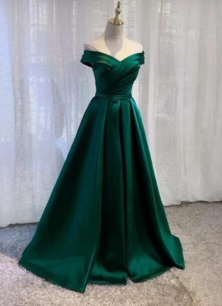 Elegant Cheap On Sale Off Shoulder A Line Satin Formal Green Prom Dress KPP0816