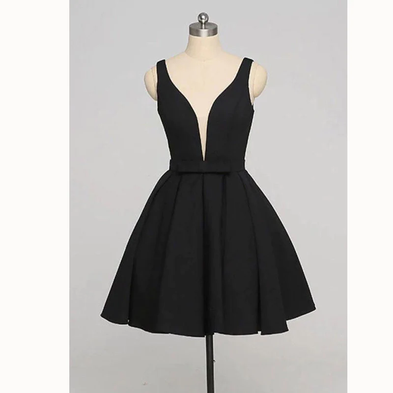 Simple Black V Neck Short Prom Homecoming Dresses Cocktail Semi formal Gown KPP0889