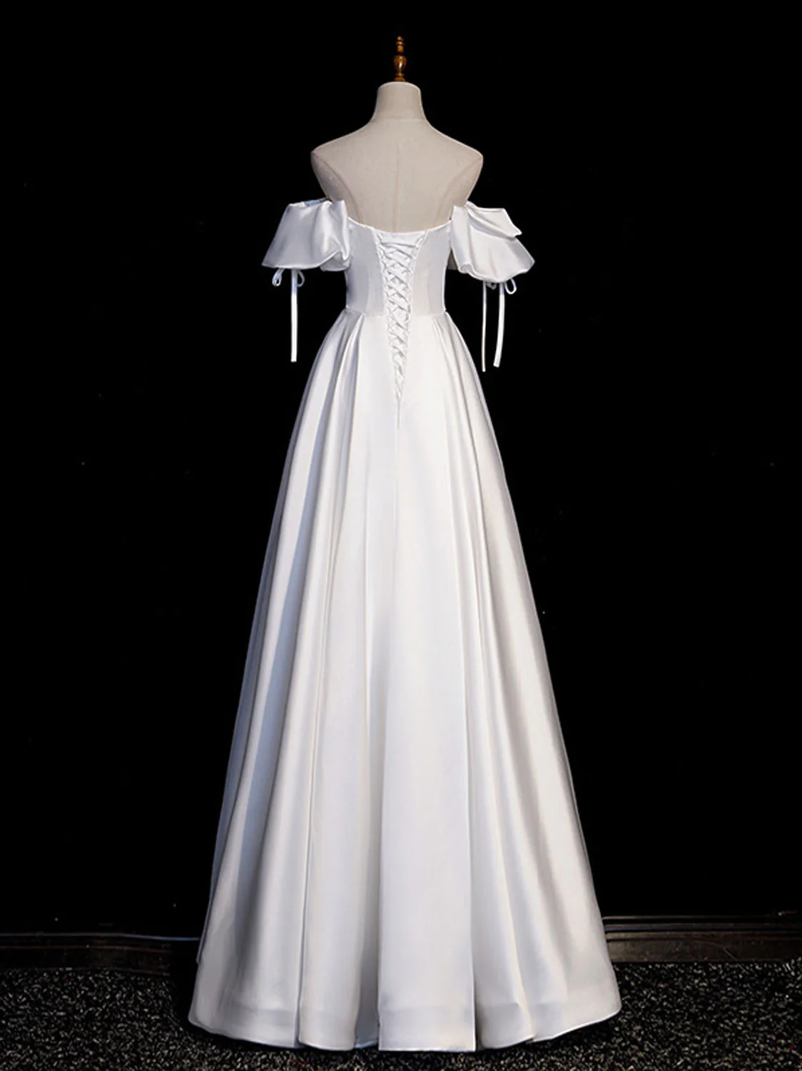 White A-Line Satin Long Prom Dresses, White Evening Dresses KPP0935