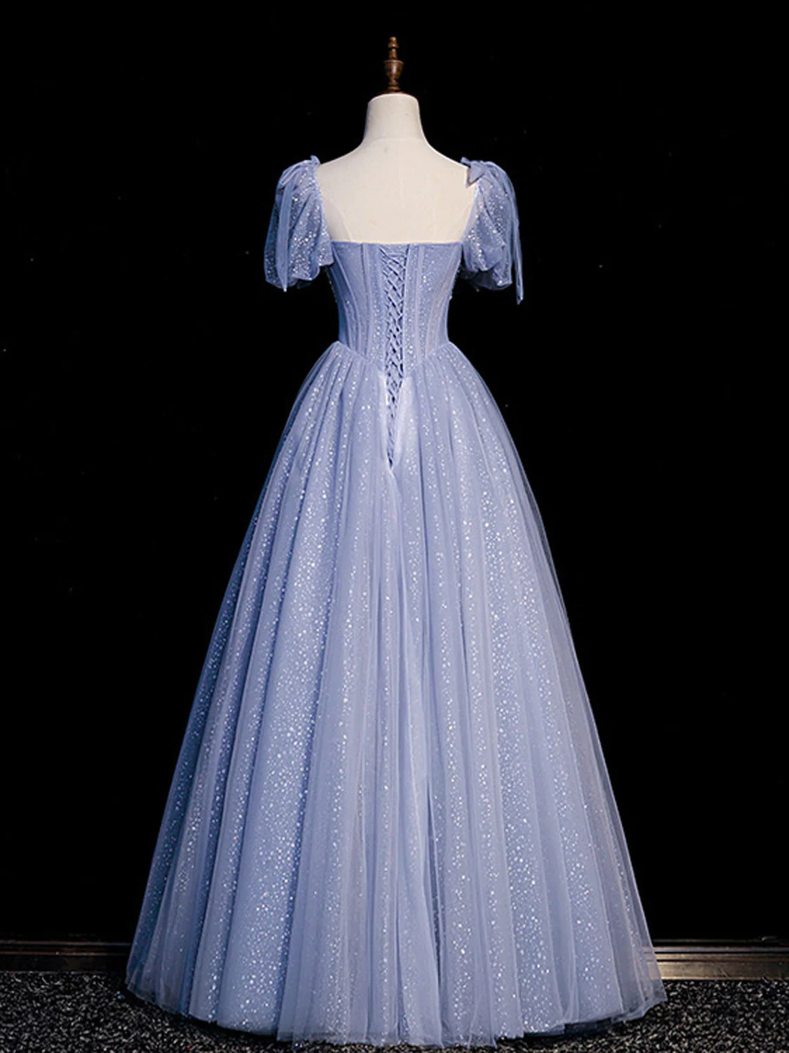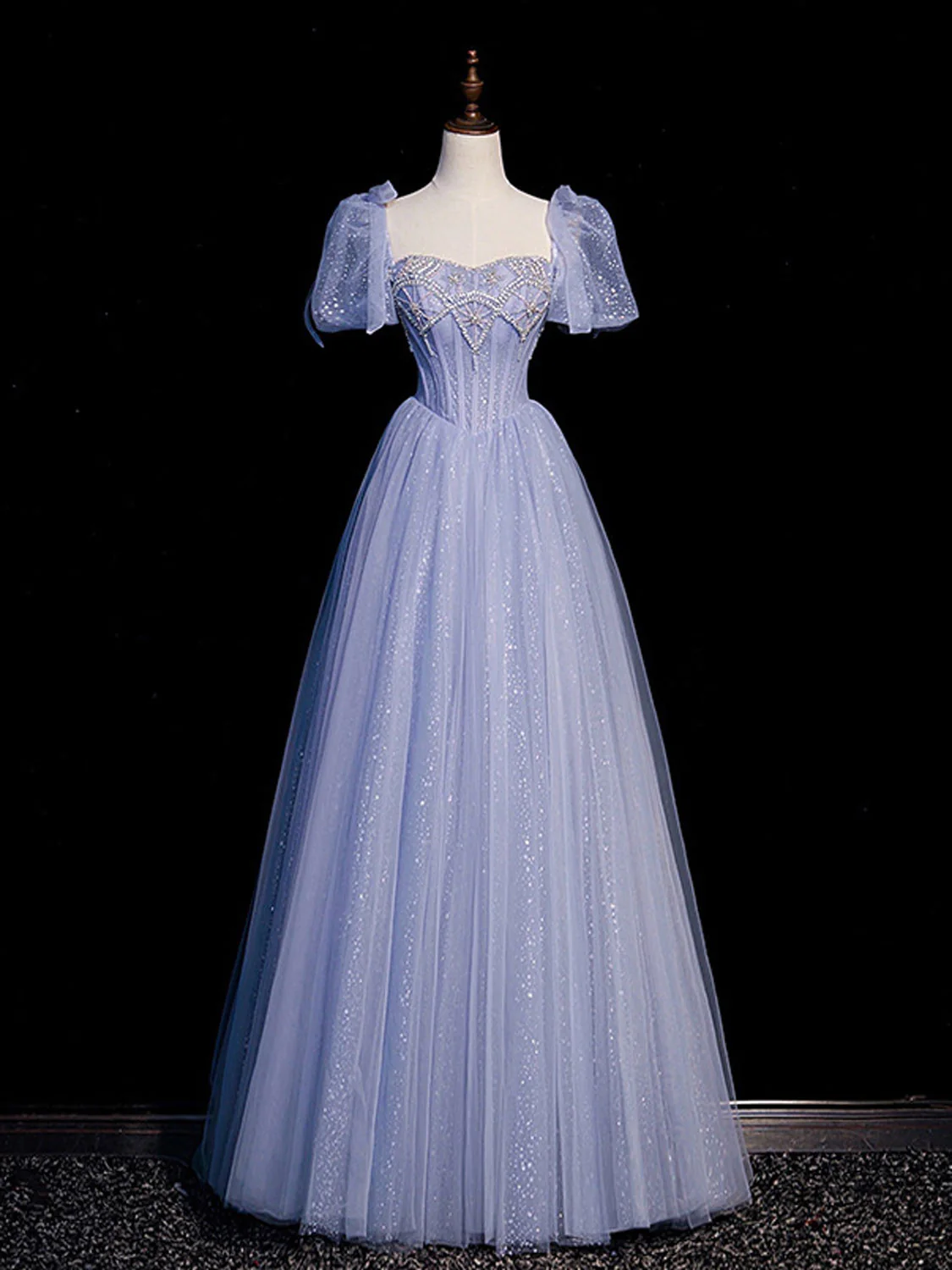 A-Line Blue Sweetheart Neck Tulle Long Prom Dress, Blue Formal Evening Dresses KPP0939