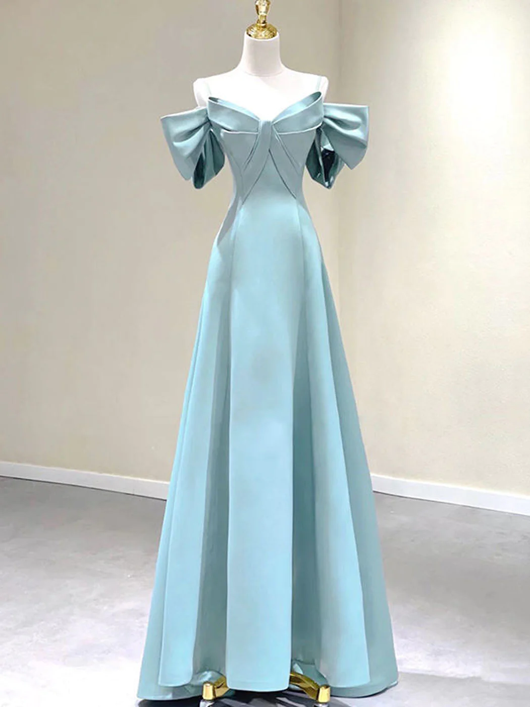 Blue A-Line Satin Long Prom Dresses, Blue Satin Long Formal Dresses KPP0976