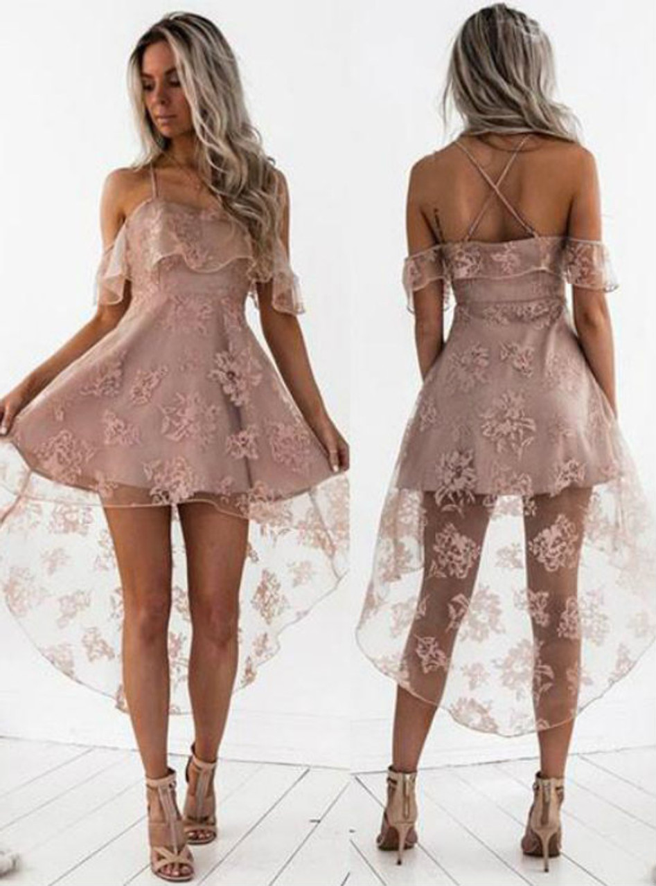 Dusty Pink Homecoming Dresses Ruffles Sheer Layer Short Prom Dresses KPP1436