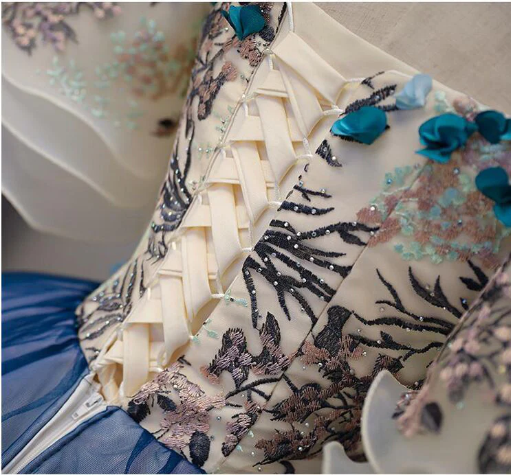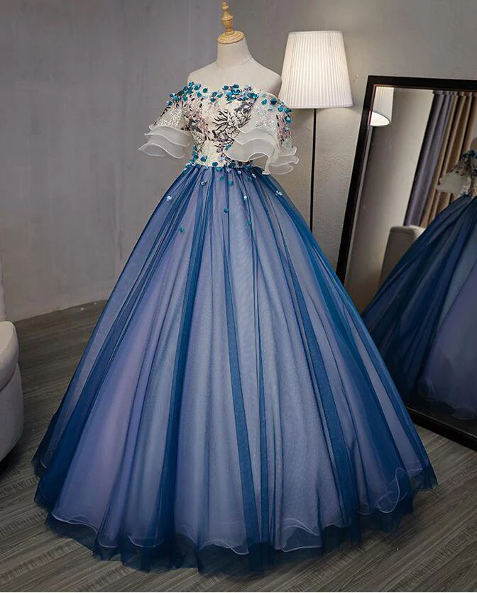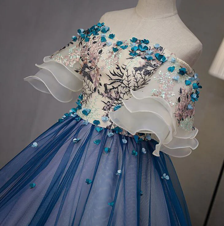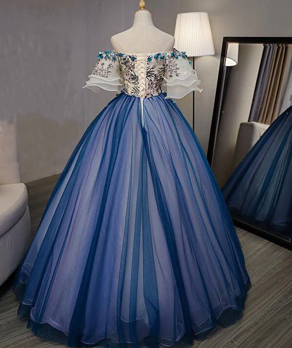 Ball Gown Off the Shoulder Short Sleeve Lace up Sweetheart Prom Dress with Appliques KPP0625