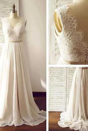 A Line V-Neck Open Back Long Chiffon Prom Dresses KPP0770