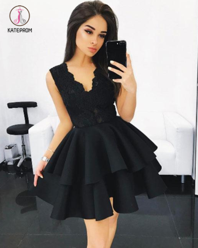 Kateprom Cute Black Lace Short Homecoming Dress ,V Neck Short Prom Dress KPH0013