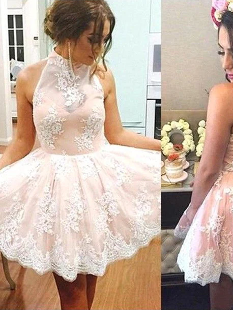 Lace Homecoming Dresses High Neck A line Chic Short Prom Dress Party Dress KPP0588