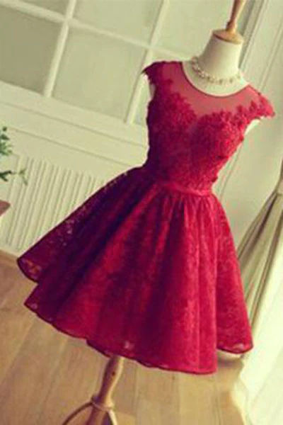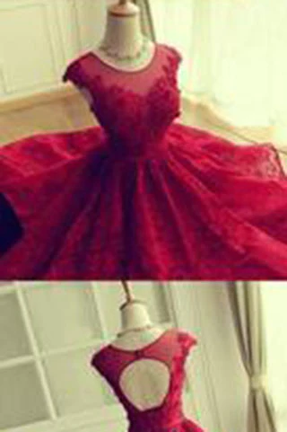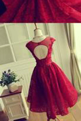 Red Lace Sleeveless Appliques Open Back Short Homecoming Dresses KPP0759