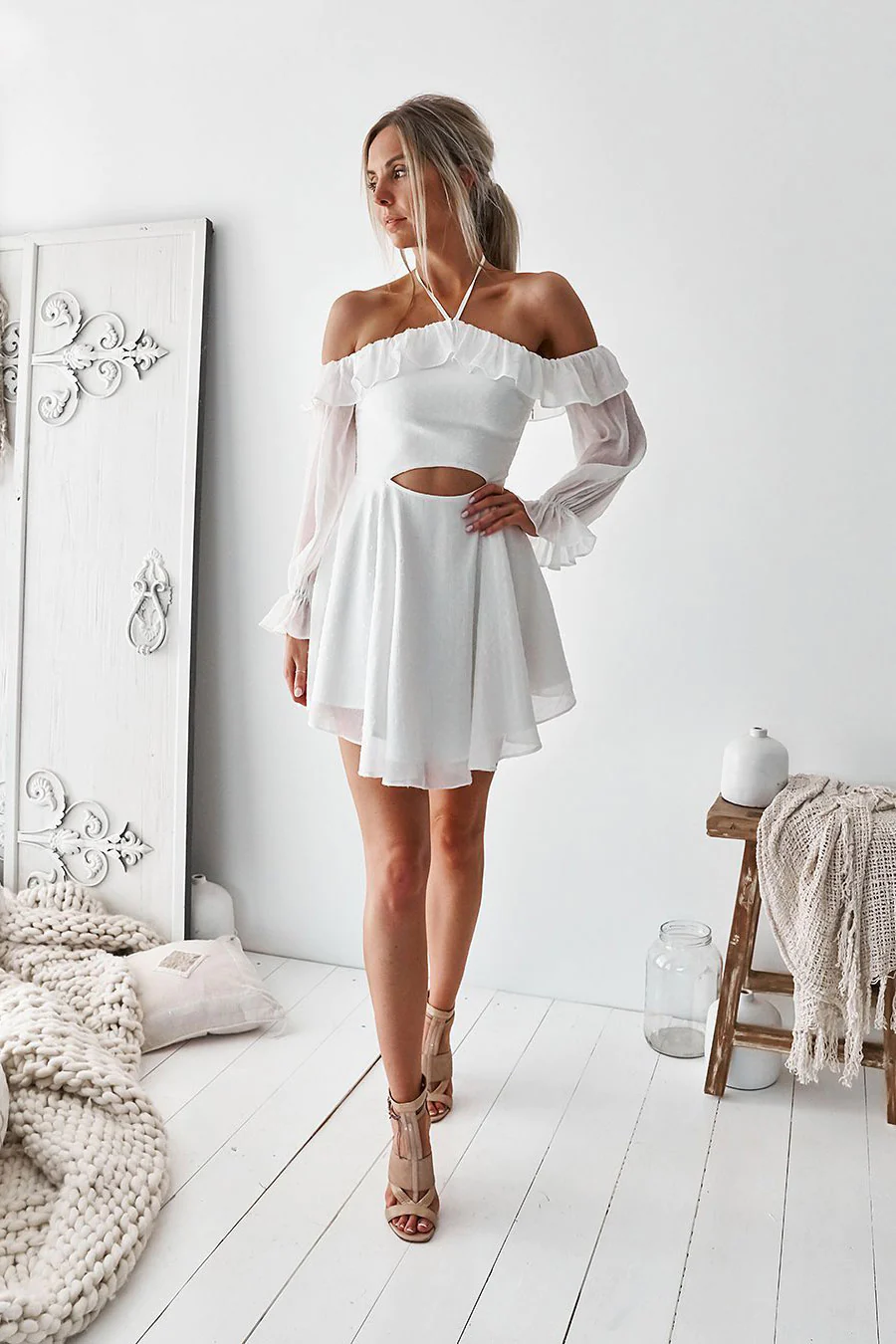 Simple white chiffon short prom dress white cute summer dress KPP1093