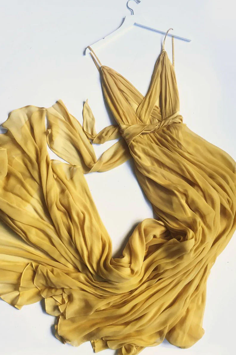 Simple yellow chiffon long prom dress, yellow evening dress KPP1139