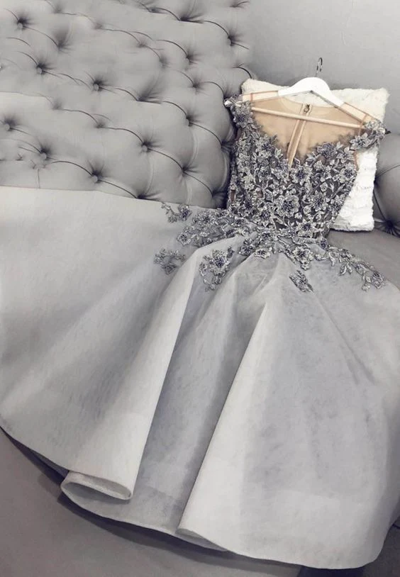 Gray tulle appliqué short dress party dress Homecoming Dresses KPP1484
